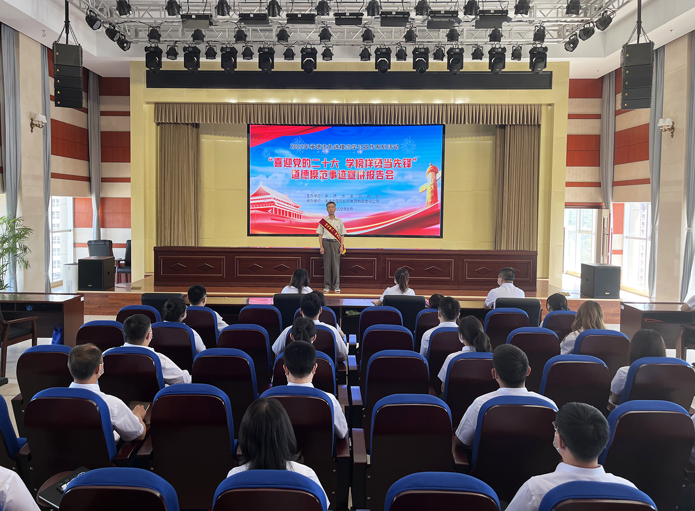 为进一步发挥“新时代承德榜样” “道德模范”先进典型的示范引领作用,大力弘扬塞罕坝精神,全面助力“四个再建功立业”,汇聚起公司高质量发展的精神动力,喜迎党的二十大胜利召开,5月27日,由市委宣传部主办的“喜迎党的二十大 学榜样争当先锋”道德模范事迹宣讲报告会在华体会成功举行。