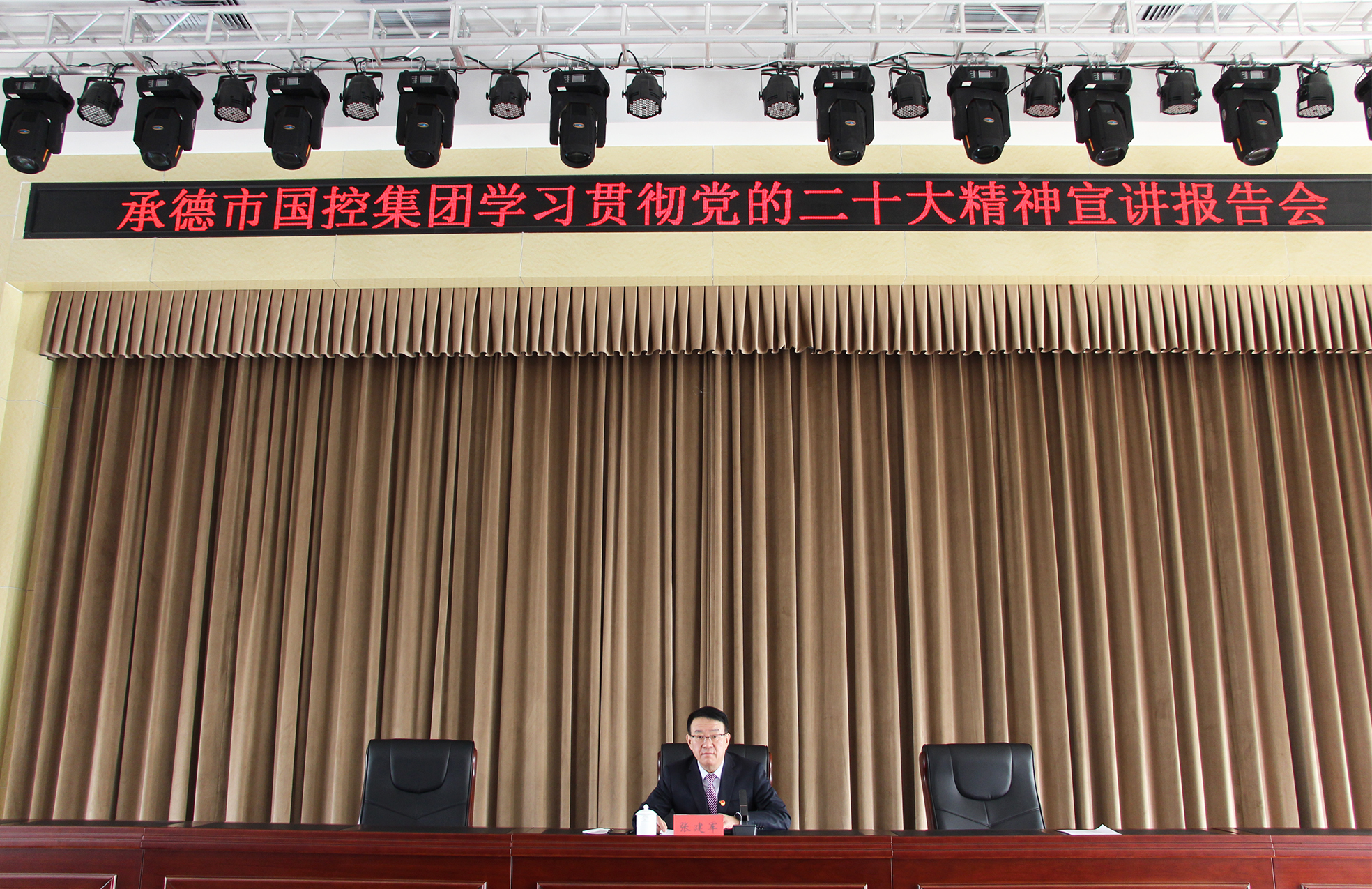 张建军强调,学习宣传贯彻党的二十大精神,事关党和国家事业继往开来,事关中国特色社会主义前途命运,事关中华民族伟大复兴。集团公司上下要全面学习、全面掌握、全面落实党的二十大精神,引导集团公司上下深入领会党的二十大提出的新思想、新论断、新要求,深刻领悟“两个确立”的决定性意义,增强“四个意识”,坚定“四个自信”,做到“两个维护”,解放思想、奋发进取、真抓实干,深入谋划中国式现代化国控场景,为开创华体会高质量发展新局面,加快建设高质量发展“生态强市、魅力承德” 凝聚磅礴力量,作出国控贡献。